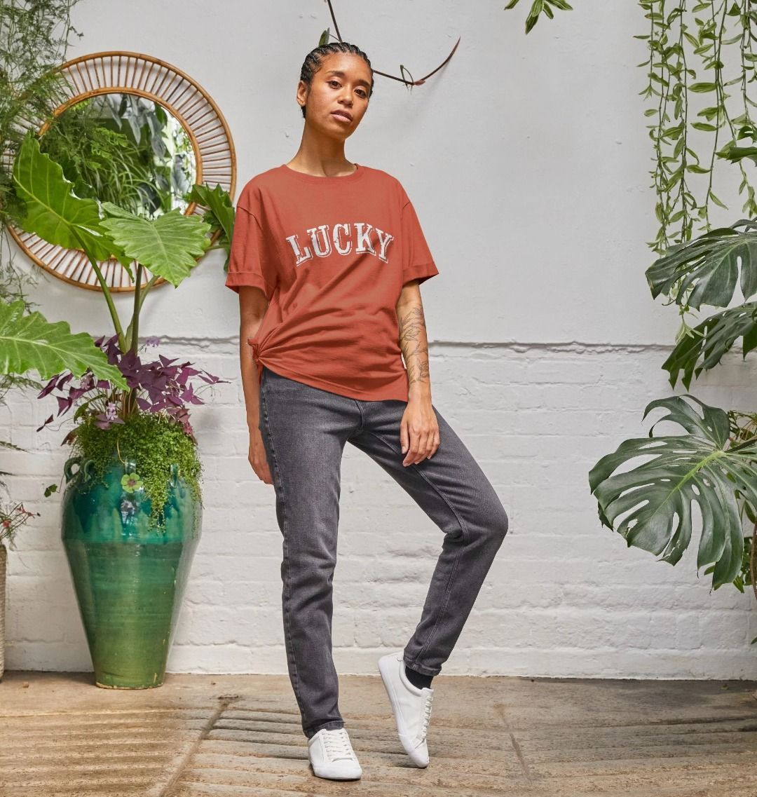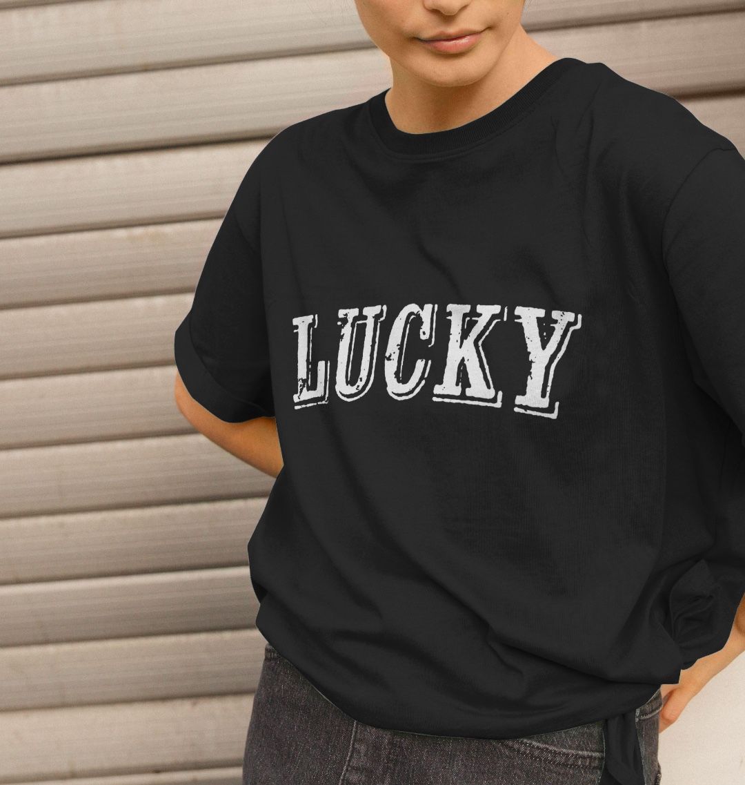 Think lucky, be lucky, remember how lucky you are and most importantly create your own luck while wearing this fabulous organic certified LUCKY T-SHIRT!!