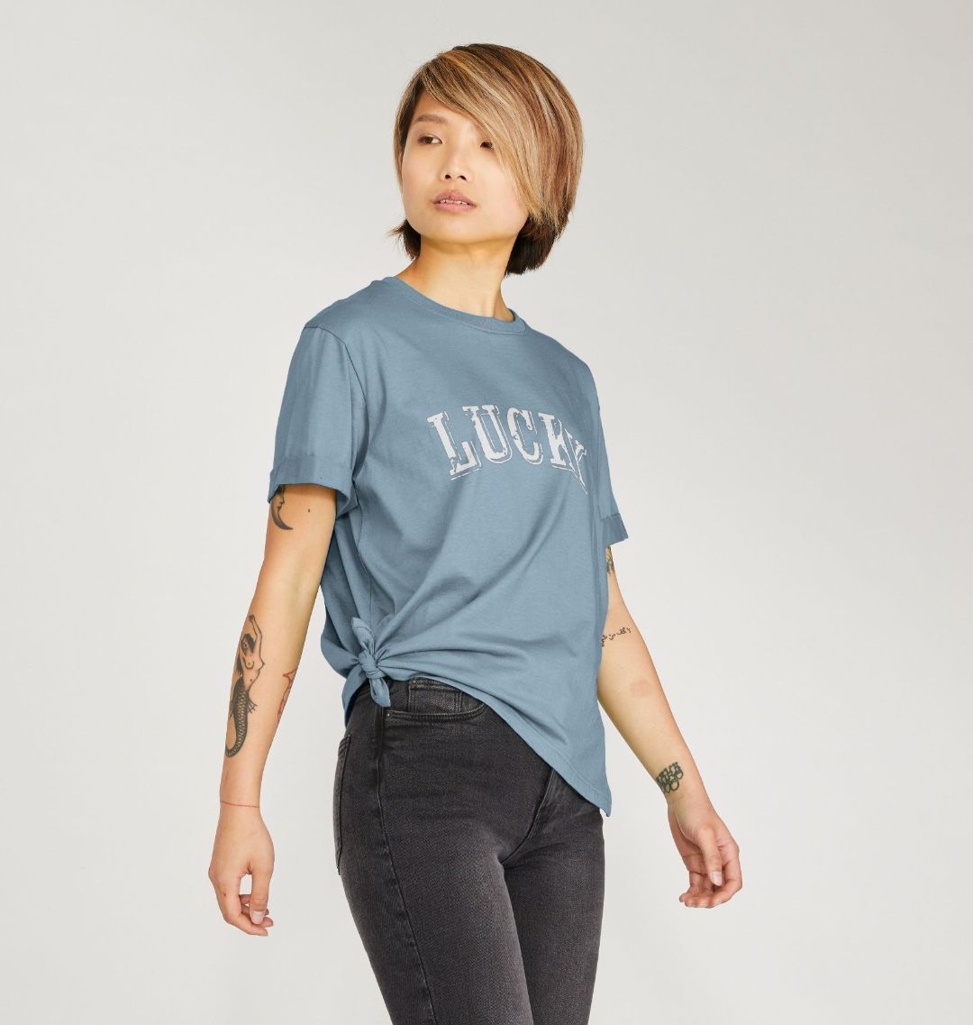 BE LUCKY T-SHIRT WHITE LOGO (ON MANY COLOURS) WOMENS RELAXED FIT